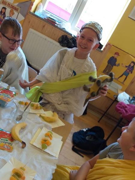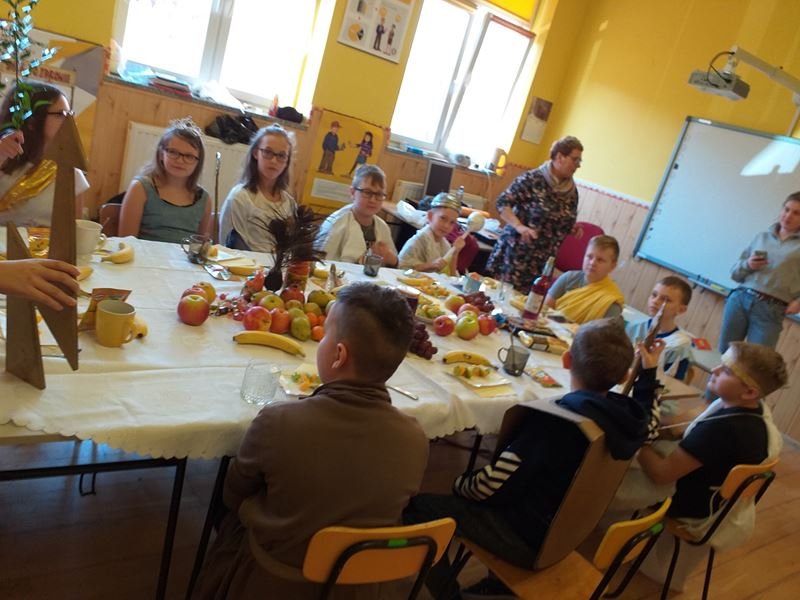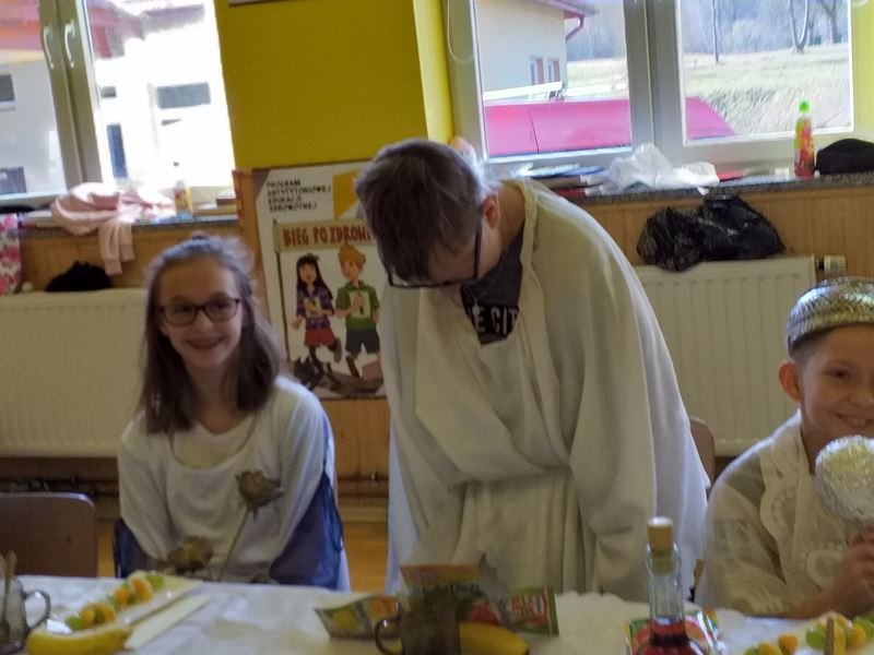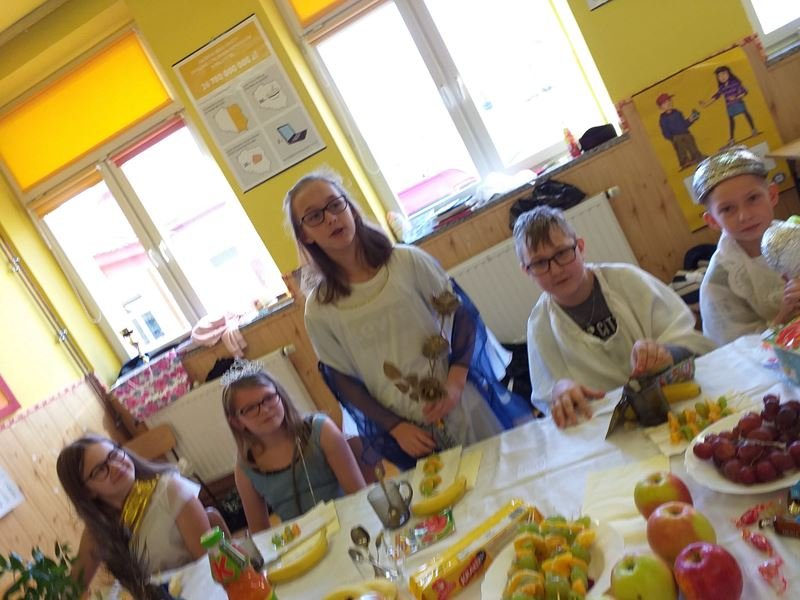 Właśnie w tym miejscu gromadzi corocznie wszystkie bóstwa, aby z nim świętowały i cieszyły się wiecznością. I takie wydarzenie miało miejsce w naszej szkole .W dniu 28 lutego 2019r. uczniowie kl.5 na podsumowanie zajęć związanych ze starożytną Grecją przygotowali ucztę bogów.