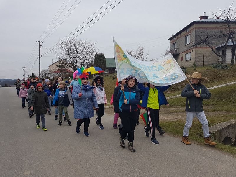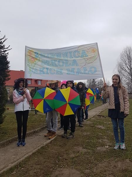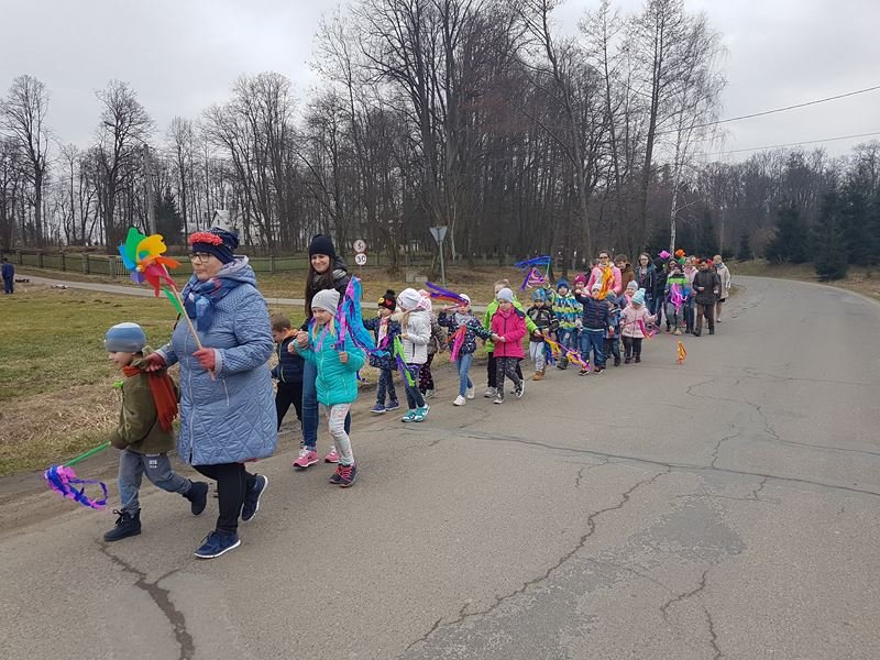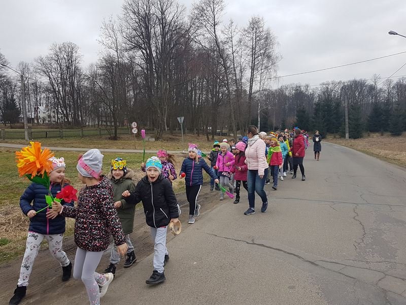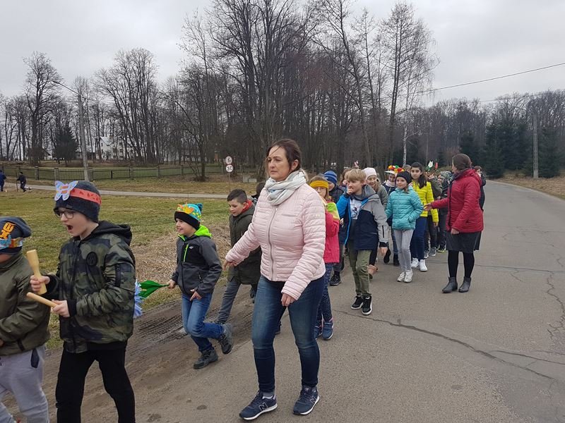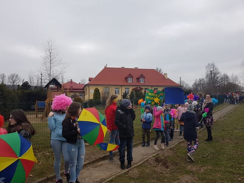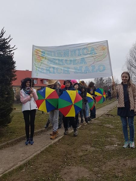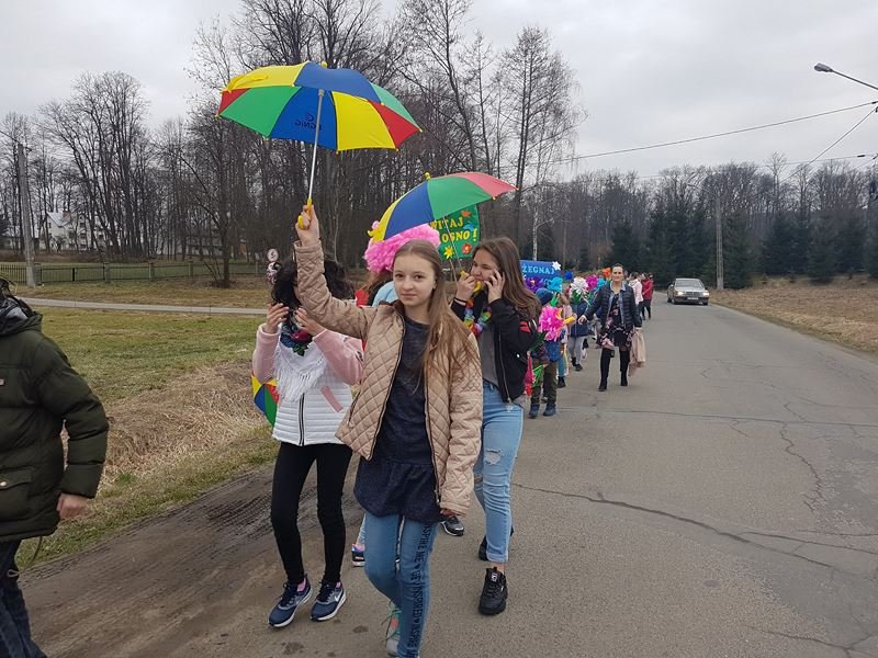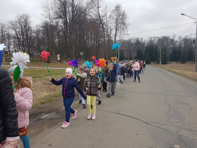 Nie zawsze pogoda zgadza się z podanymi informacjami i wiosna ociąga się z przyjściem. Dlatego tradycją jest, aby wiosnę budzić ze snu głośnymi i kolorowymi pochodami. I w naszej szkole, w czwartek 21 marca został zorganizowany taki przemarsz. Uczniowie począwszy od zerówki do klasy siódmej przeszli w barwnym i bardzo hałaśliwym korowodzie ulicami Zmiennicy niosąc hasła zachęcające zimę do ustąpienia miejsca wiośnie. Maszerując śpiewali piosenki i wznosili okrzyki wygrywając na przeróżnych bardziej i mniej tradycyjnych instrumentach. Przywoływali już tak bardzo wyczekiwaną porę roku kiedy przyroda budzi się do życia po zimowym śnie, śpiewają radośnie ptaki i wszystko wokół zaczyna przybierać zielona barwę Po przemarszu z kolorowym gaikiem uczniowie wrócili do szkoły pewni, że wiosna tuż ,tuż ! I wiosna przyszła pieszo, już ptaki za nią śpieszą ,już trawy przed nią rosną i szumią : Witaj wiosno !
