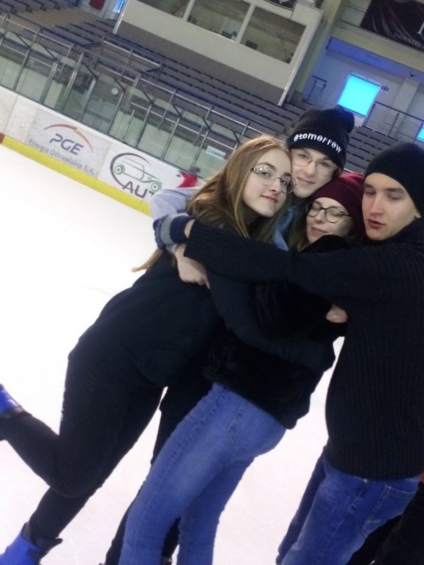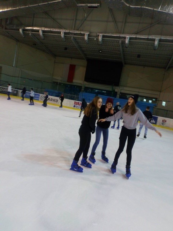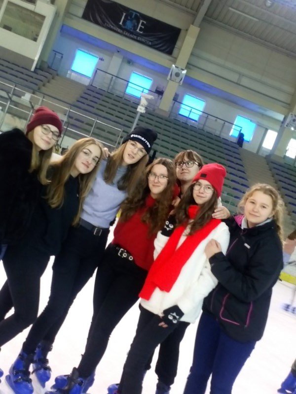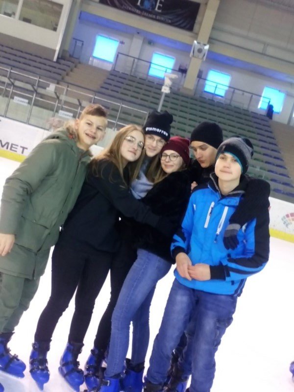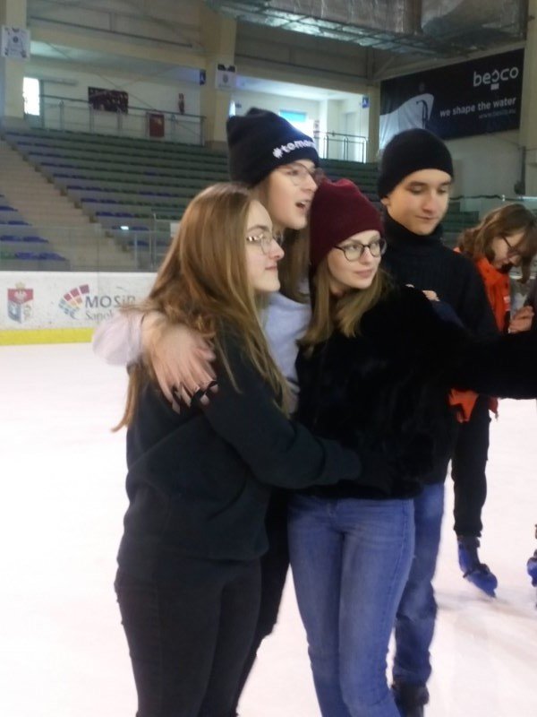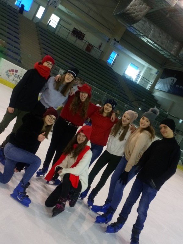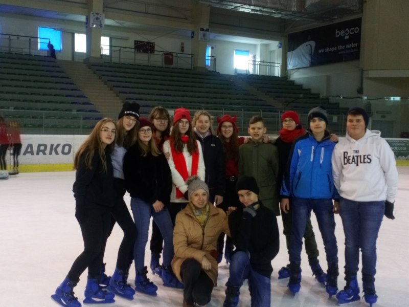 W bieżącym roku jednak uczniowie klas IV-VIII wraz z opiekunami postanowili poszukać emocji z dala od szkoły. Wszyscy wybrali się do Areny Sanok na lodowisko, by tam doskonale się bawić. Ci, którzy już wcześniej przetarli szlaki, byli przewodnikiem na tej trudnej drodze samodzielnej jazdy. Upadki, kolizje i śmieszne sytuacje nie zniechęciły nikogo. Nawet ci, którzy dzielnie i usilnie przez pierwszą godzinę trzymali się bandy, w końcu ruszyli do jazdy, widząc, z jakim powodzeniem jeżdżą ich koledzy. Z pewnością pomogły też „krzesełka”, a także umiejętności niektórych koleżanek i kolegów. Świetna zabawa i coraz lepsza technika jazdy zostały uwiecznione na zdjęciach. Dwie godziny upłynęły bardzo szybko i trzeba było zwrócić wypożyczony sprzęt. Być może siniaki i ból mięśni stanowiły pewien minus wyprawy, ale śmiech, zabawa, integracja i dobre samopoczucie z pewnością zostaną w pamięci uczniów i opiekunów.