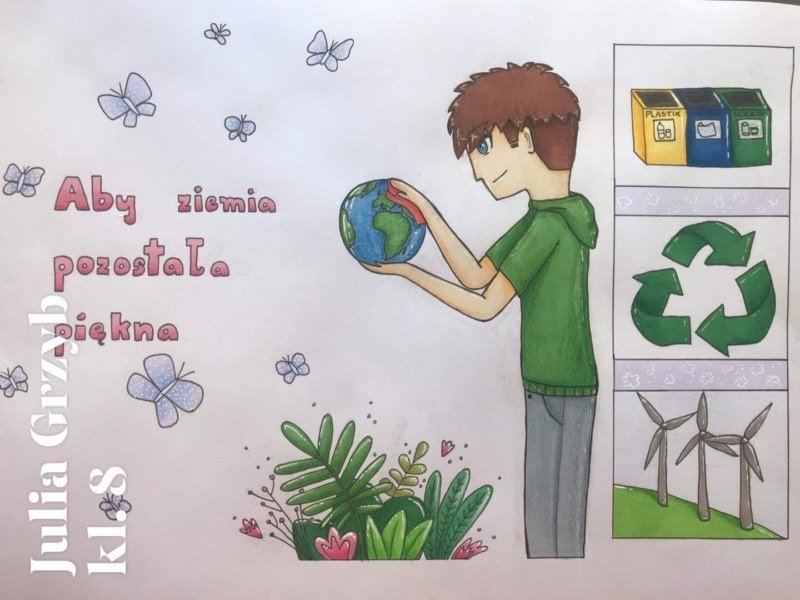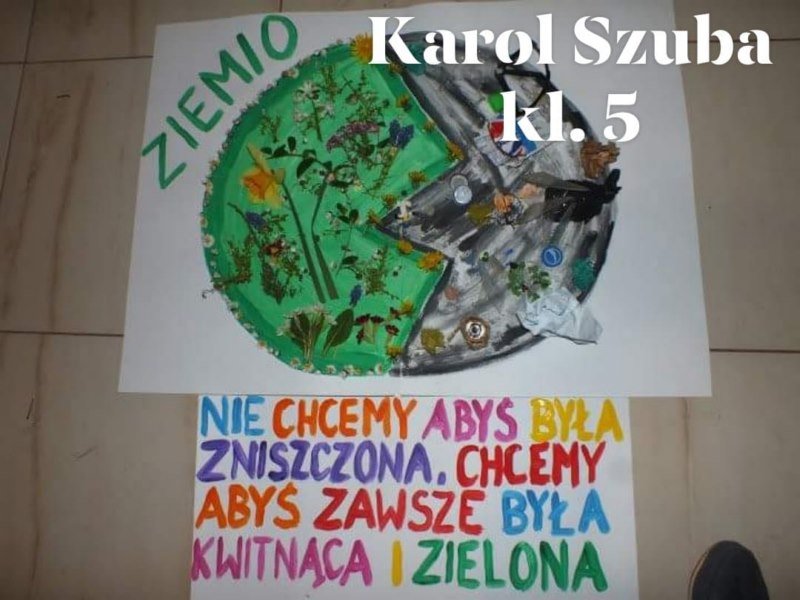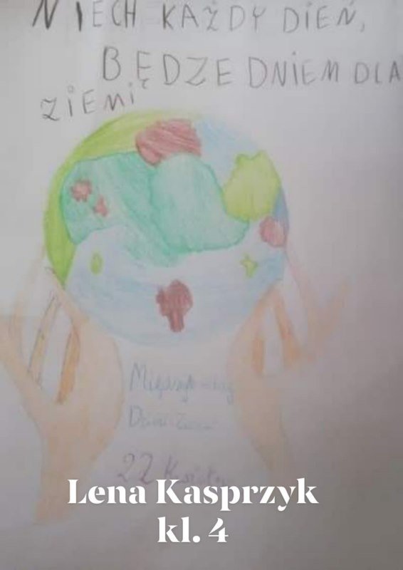 Nasi uczniowie z domowego zacisza przyłączyli się do „wspólnego świętowania” przeniesionego do Internetu. Wzięli udział w dwóch działaniach do wyboru: wykonali pracę plastyczną dowolną techniką pt. „Aby Ziemia pozostała piękna” lub zaprojektowali oryginalne stroje ekologiczne z surowców wtórnych. Oddając wymowny charakter swoim dziełom pokazali jak powinniśmy się troszczyć o Matkę Ziemię. Gratuluję pomysłów młodym artystom i wszystkim serdecznie dziękuję za trud i pracę poświęconą nad realizacją projektu. Mam nadzieję, że w przyszłym roku uczcimy wspólnie święto naszej planety bez żadnych ograniczeń w murach szkoły.