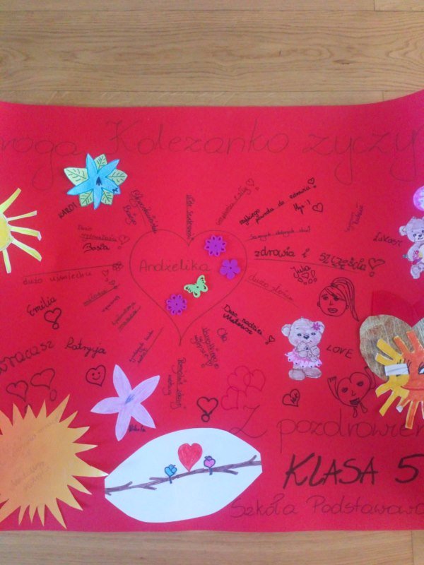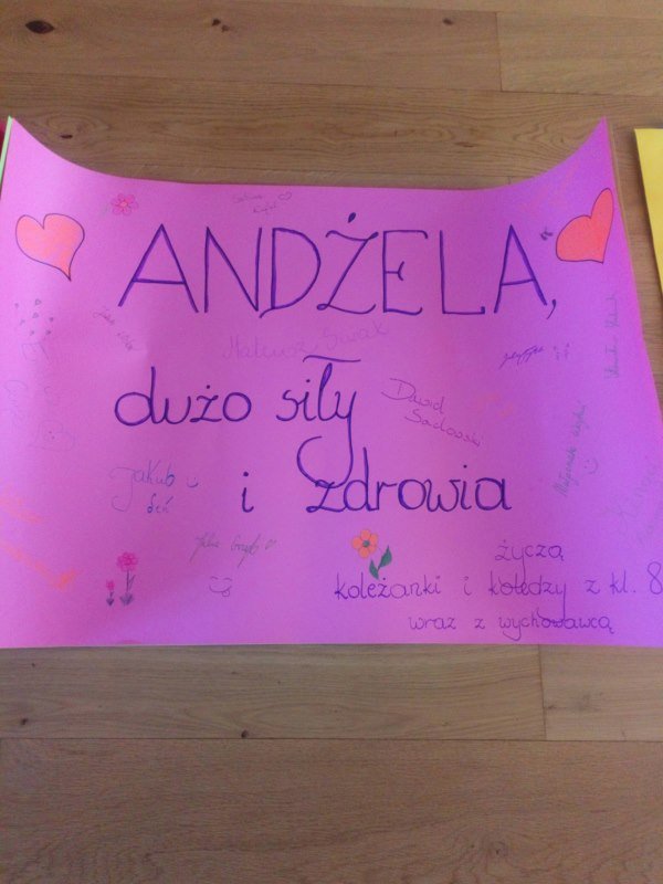 Nie mogliśmy jako społeczność Szkoły Podstawowej w Zmiennicy pozostać obojętni na apel rodziny i przyjaciół Andżeliki. W tym tygodniu odbyła się akcja charytatywna „Pomagamy Andżelice”. Zbieraliśmy pieniądze, pisaliśmy kartki z życzeniami powrotu do zdrowia, zaś młodsze dzieci przygotowały laurki dla starszej koleżanki. Odzew był bardzo duży. Po raz kolejny przekonaliśmy się, że dobro jest niezniszczalne. Pieniądze oraz dowody sympatii zostały przekazane rodzinie Andżeliki. Ona sama przez Messengera przesyła wszystkim serdeczne podziękowania.