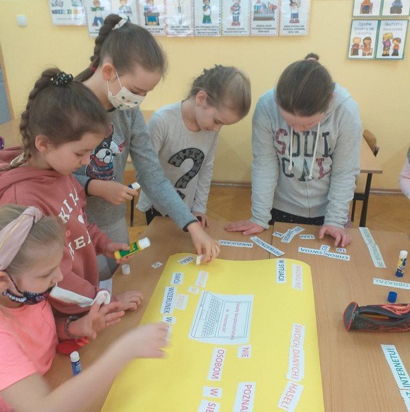 - przeprowadzenie zajęć edukacyjnych w klasie I i III na temat zasad bezpieczeństwa w Internecie oraz wad i zalet korzystania z Internetu,
