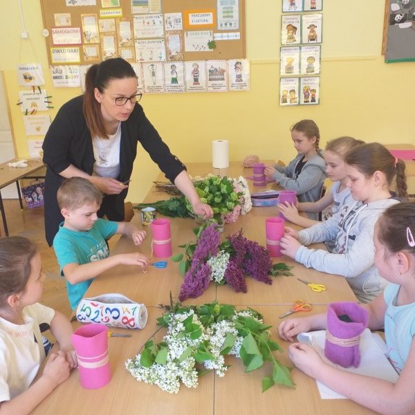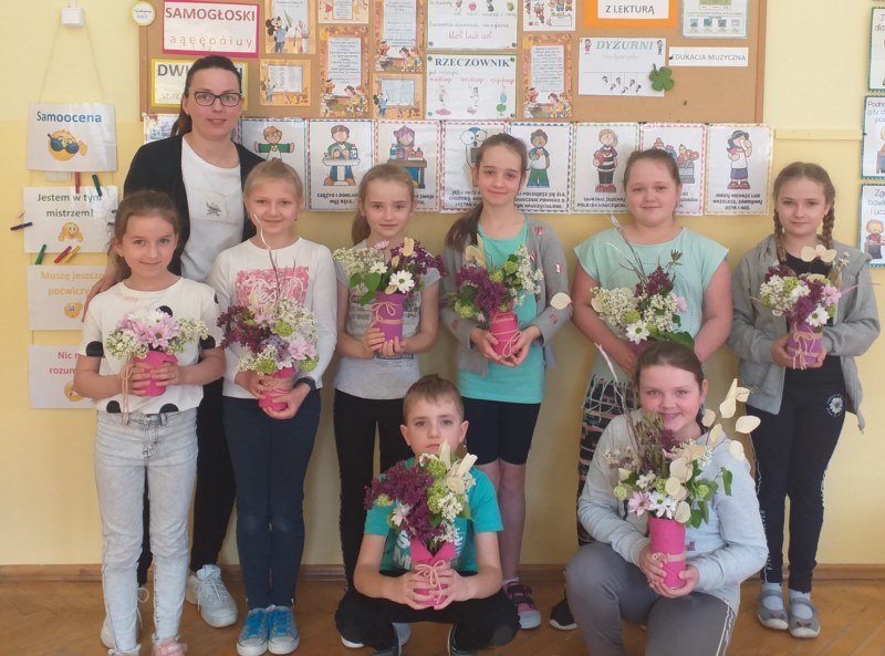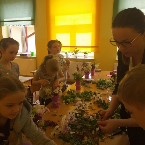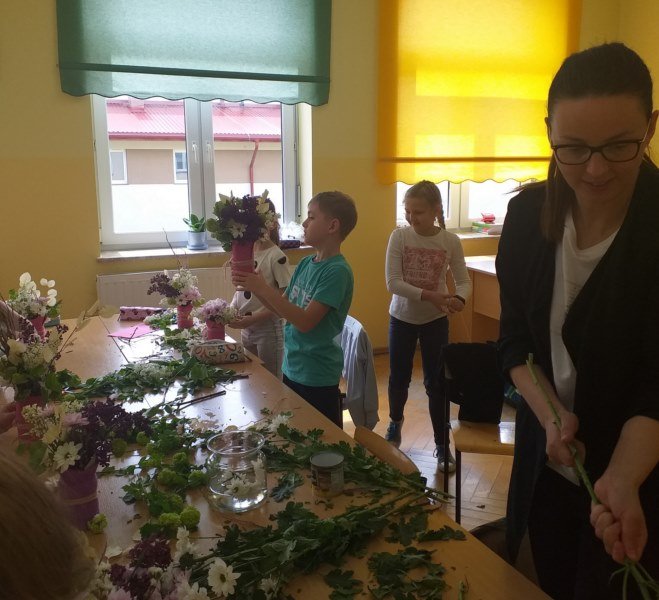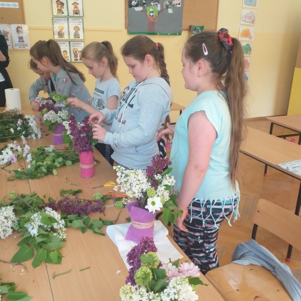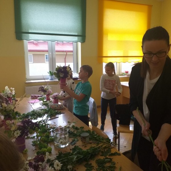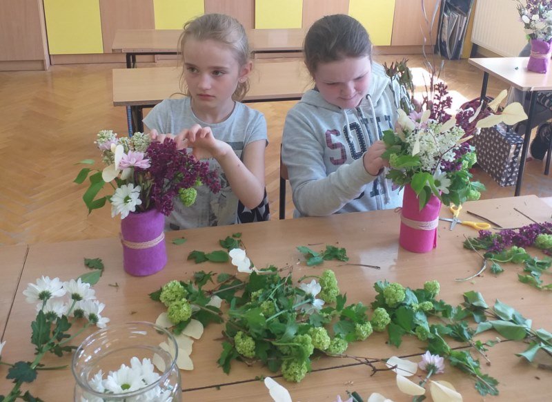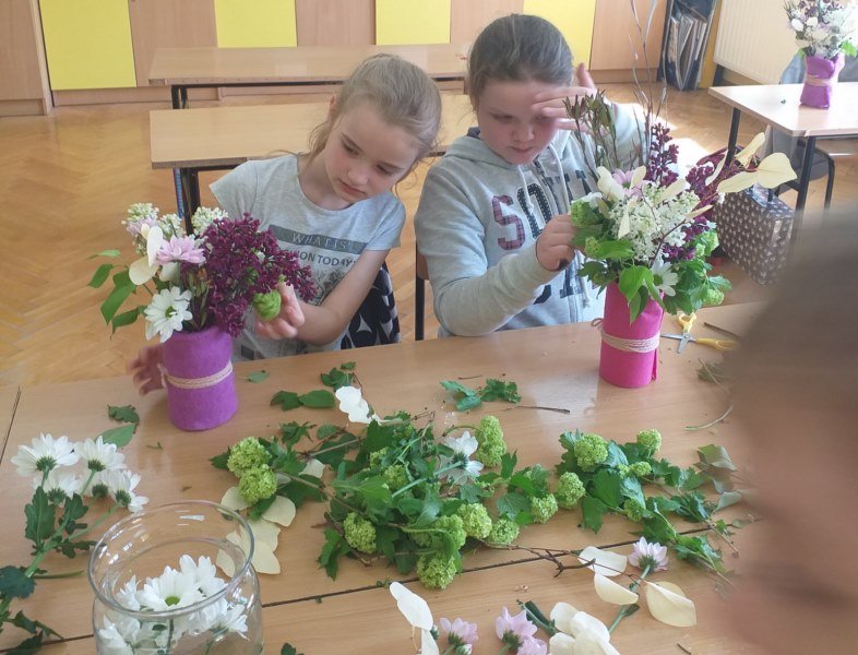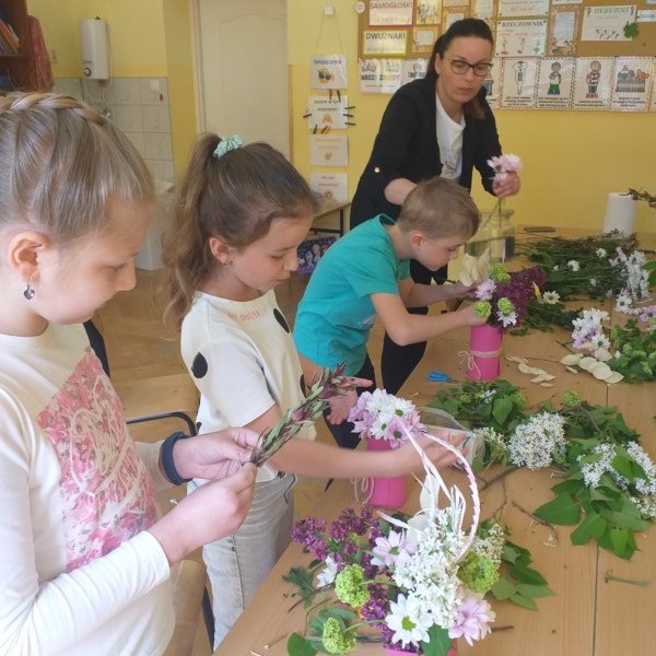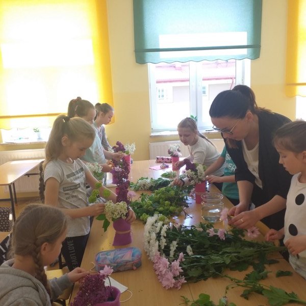 Na spotkaniu Pani Madzia opowiadała o swojej pracy i prezentowała różne gatunki roślin, które często wykorzystuje w kompozycjach kwiatowych. W tym dniu nasza klasa na chwilę zamieniła się w mini pracownię florystyczną. Uczniowie wykonywali swoje bukiety, jako prezent dla mam z okazji zbliżającego się ich święta. Powstałe bukiety były piękne i niepowtarzalne, a samej radości z ich wykonywania bardzo dużo.