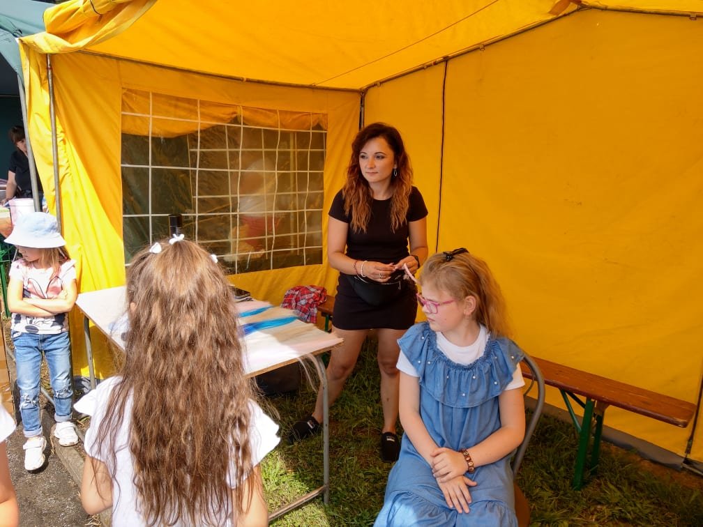 Bardzo obleganym przez uczestników imprezy było stanowisko – malowania twarzy.Panie Monika Rachwał,Sylwia Zajchowska i nasza uczennica Nikola Rajchelprzeobrażały twarze dzieci w kolorowe motyle, kwiaty oraz bajkowych bohaterówz niezwykłą precyzją i artyzmem.Do pięknego makijażu pani Sylwia Pelc wyczarowywała przepiękne fryzury. Nasi najmłodsi korzystali też z licznych zjeżdżalni i dmuchańców. Mogli również puścić wodze fantazji i tworzyć własne arcydzieła na stretchu.