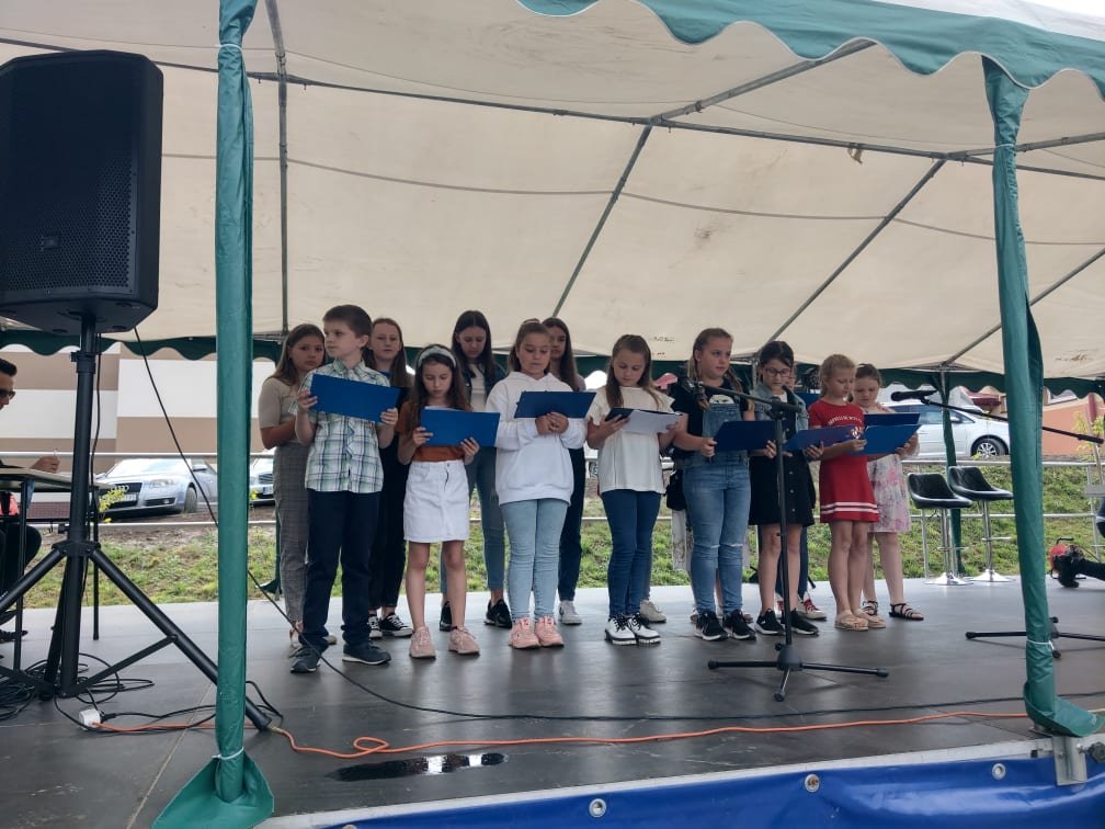 i wesołej zabawy.Piknik rozpoczął się od wspólnych zabaw z dziećmi. Nie mogło zabraknąć przygotowanego przez uczniów naszej szkoły programu artystycznego. Na początku na scenie wystąpiły dzieci z klas 1-3, a następnie uczniowie z zespołu „Pszczółki”. Zaprezentowalioni swoje umiejętności wokalne. Dziewczęta i chłopcy wystąpili z bardzo różnorodnym repertuarem, który bardzo spodobał się publiczności.