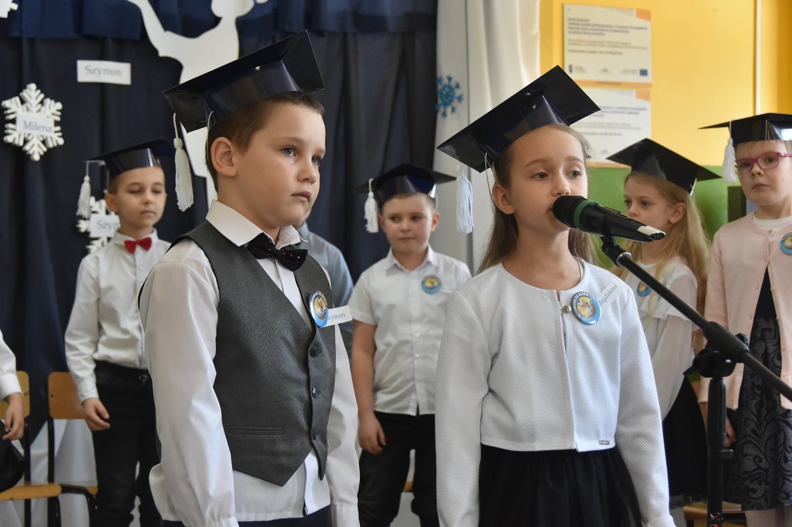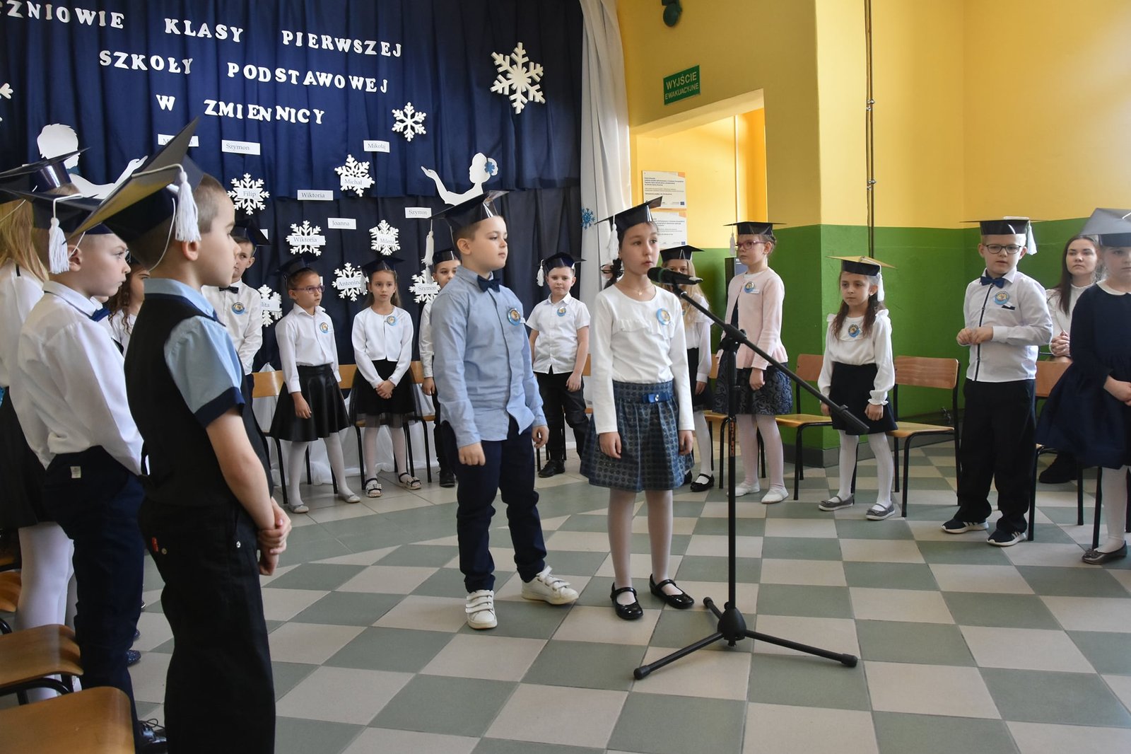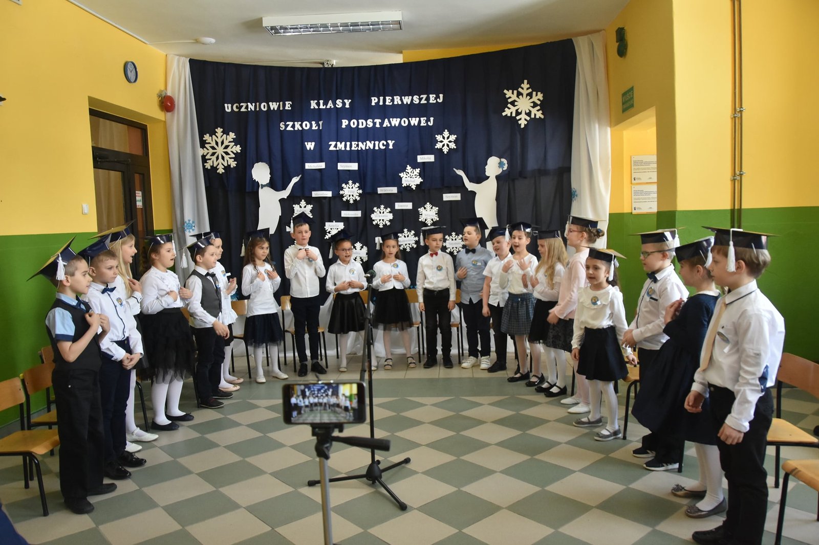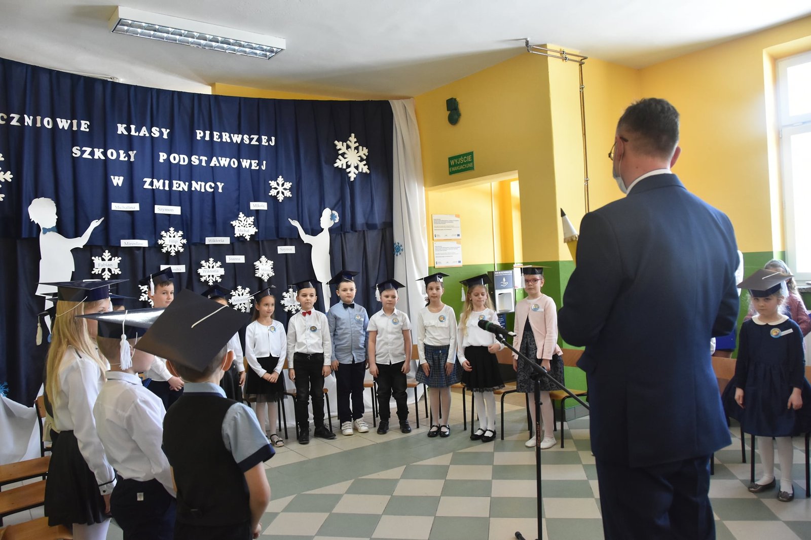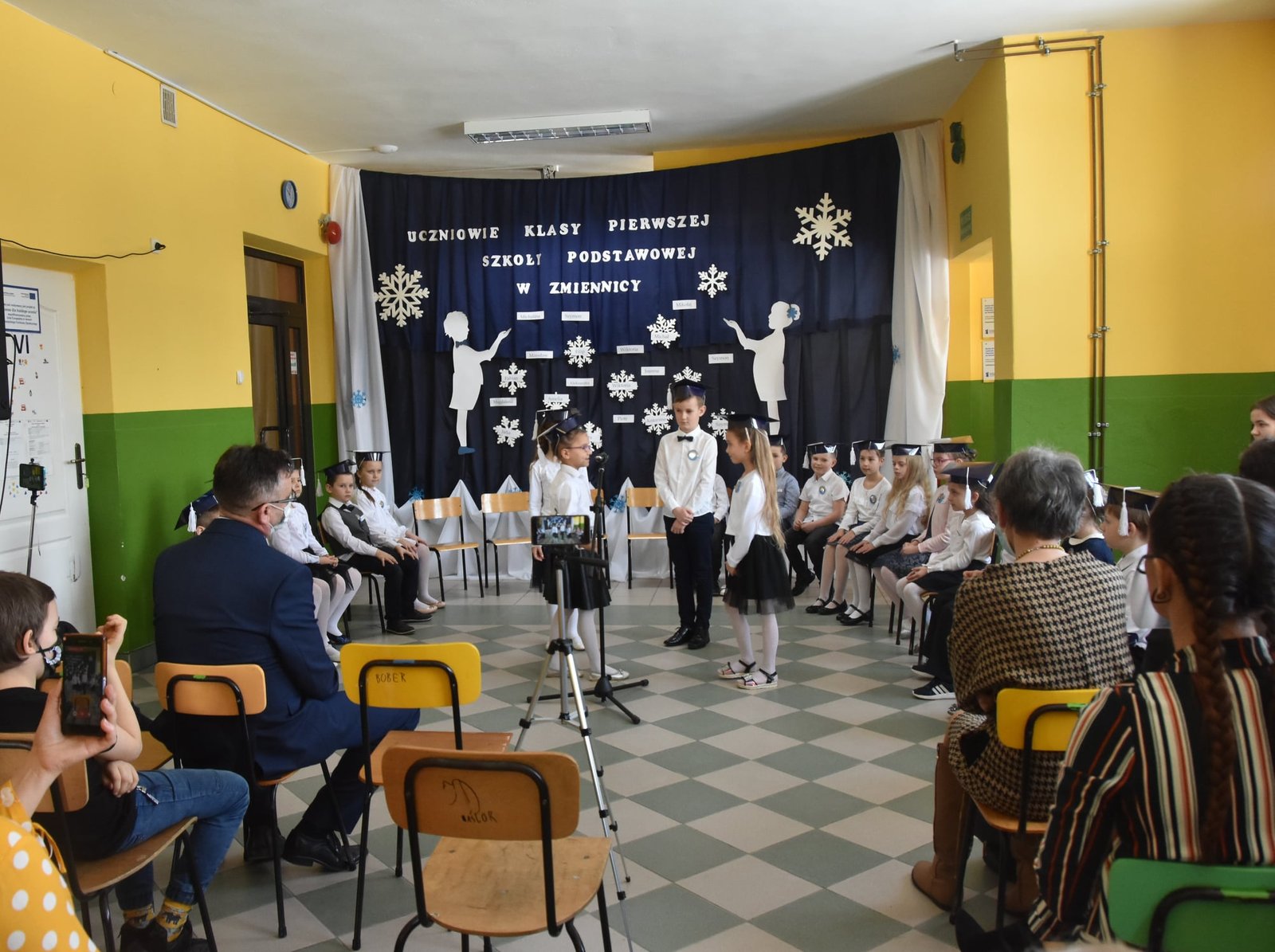 Zanim pierwszoklasiści zostali przyjęci do grona społeczności szkolnej przedstawili to, czego nauczyli się w szkole. Gotowi, odświętnie ubrani i bardzo przejęci, przystąpili do zaprezentowania swoich umiejętności. Dzieci recytowały wiersze i śpiewały piosenki, starając się udowodnić, że każde z nich zasługuje na tytuł ucznia swojej szkoły. Za swój występ otrzymały gromkie brawa. Doniosłym momentem uroczystości było ślubowanie pierwszoklasistów, które wzbudziło wiele emocji. Aktu pasowania dokonał dyrektor Jan Piotrowski. Tym samym pierwszaki zostały włączone do społeczności uczniowskiej Szkoły Podstawowej w Zmiennicy. Potwierdzeniem tego były dyplomy wręczone przez wychowawcę.