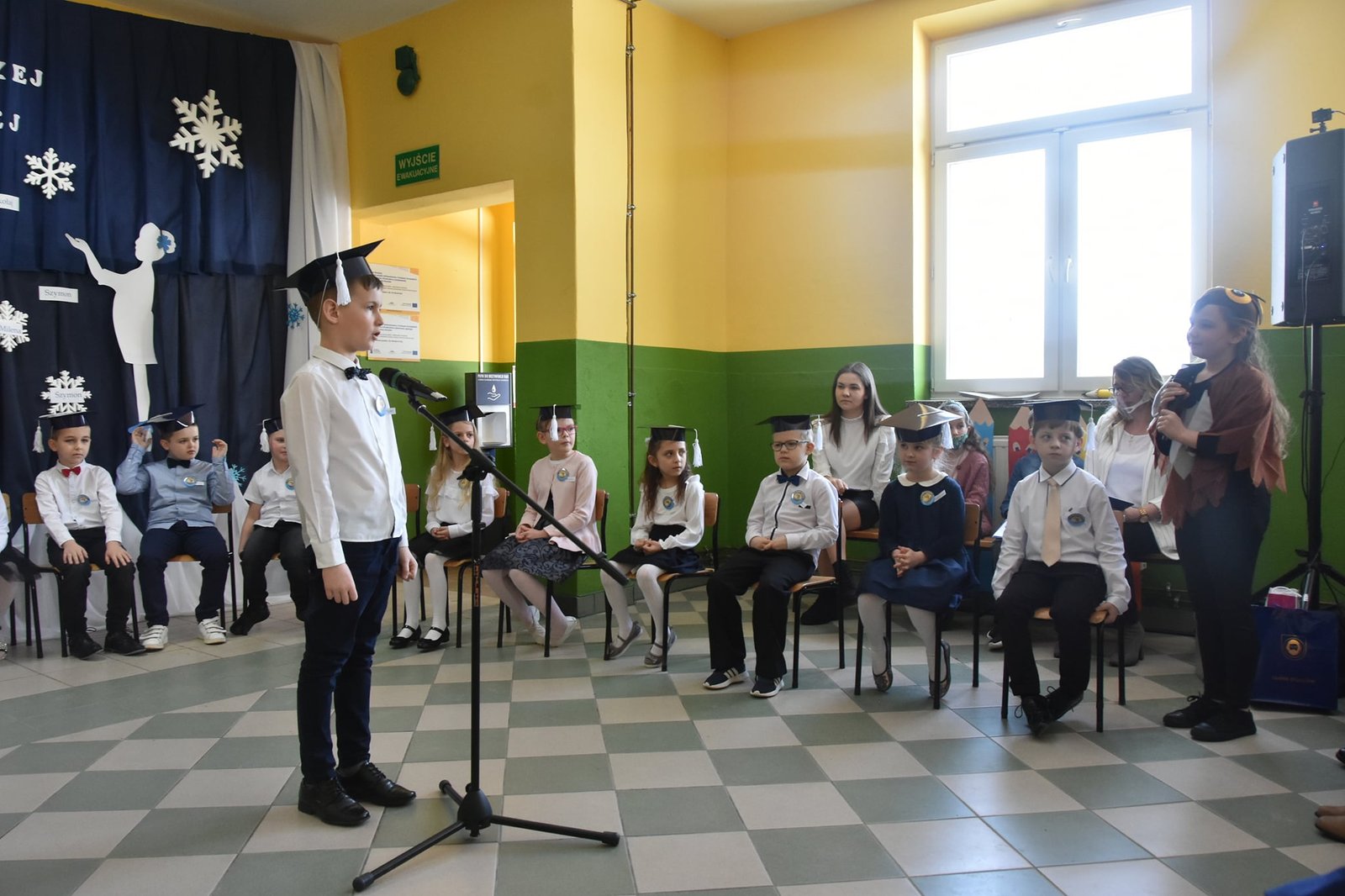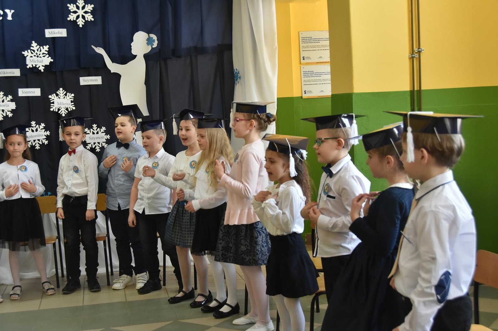 Akademia odbyła się w wąskim gronie, wzięli w niej udział zaproszeni goście, Waldemar Och- sekretarz gminy Brzozów, Mariola Pilszak- radna, a zarazem przewodnicząca Komisji Kultury, Oświaty, Sportu, Turystyki i Wypoczynku Rady Miejskiej w Brzozowie, Urszula Tesznar- radna RM w Brzozowie, Konrad Brodzicki- przewodniczący Rady Rodziców oraz przedstawiciele rodziców uczniów klasy pierwszej. Najmłodszych uczniów powitali Oliwia Brodzicka, przewodnicząca Samorządu Uczniowskiego oraz przedstawiciele klas II i III. Życzyli pierwszoklasistom jak najlepszych wyników w nauce oraz wielu przyjaźni i radosnych dni w szkole.