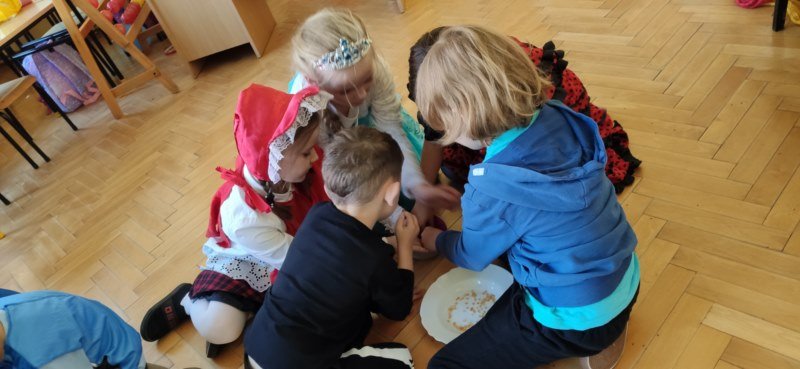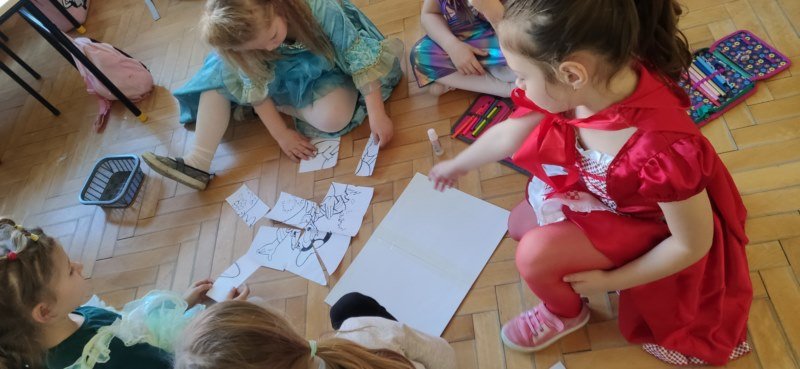 Tego dnia zorganizowano różne zabawy, zadania i konkurencje wymagające wykazania się znajomością treści bajek, a także zwinnością i szybkością. Chwilę wytchnienia i wyciszenia przyniosło przedszkolakom zetknięcie się z teatrem ilustracji Kamishibai, który zabrał je w podróż do magicznej krainy bajek. To właśnie bajki towarzyszą nam od najmłodszych lat, rozweselają i bawią, ale też przekazują ważne prawdy życiowe. Literatura ma olbrzymi udział w rozwoju osobowości i tworzeniu zasobów osobistych, kształci odpowiednie postawy moralne, rozwija dziecięcą fantazję i bogaci ich słownictwo. Ten magiczny dzień sprawił przedszkolakom dużo radości i zapewne na długo zostanie w ich pamięci.