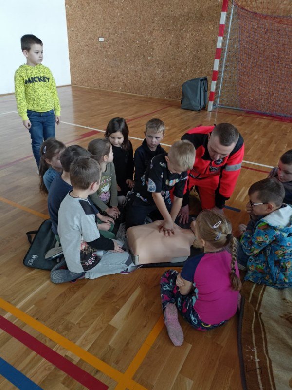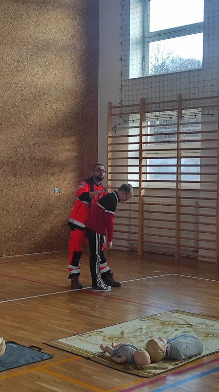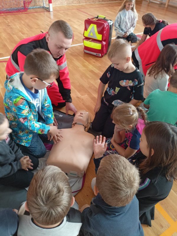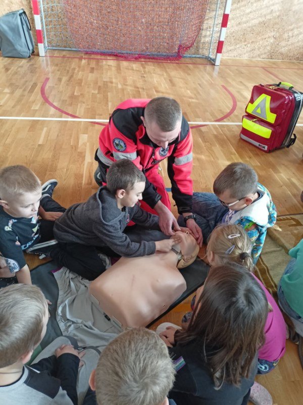 Po omówieniu wszystkich ważnych zasad uczniowie chętnie i aktywnie brali udział w wykonywaniu podstawowych czynności ratowniczych pod fachowym okiem. Serdecznie dziękujemy Panom za tę cenną lekcję.
