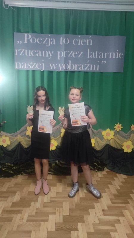 Naszą szkołę reprezentowali: Izabela Boroń (kl.1), Marlena Brodzicka (kl.5) oraz Anna Wojtal (kl.6). Nasze uczennice wystąpiły w odpowiedniej dla siebie kategorii wiekowej. Młodych artystów oceniło bezstronne jury w składzie: Anna Boczar, Magdalena Kopczyk, Waldemar Kośmider oraz Damian Kierek. Komisja konkursowa, jak sama przyznała, nie miała problemów z wyborem zwycięzców. Marlena Brodzicka i Anna Wojtal zostały Gminnymi Mistrzami Recytacji. Choć spotkanie odbyło się w kameralnym gronie, to wszyscy uczniowie zaprezentowali wysoki poziom recytacji. Serdeczne podziękowania należą się nie tylko uczniom, ale i nauczycielom, pod których czujnym okiem przebiegały przygotowania.