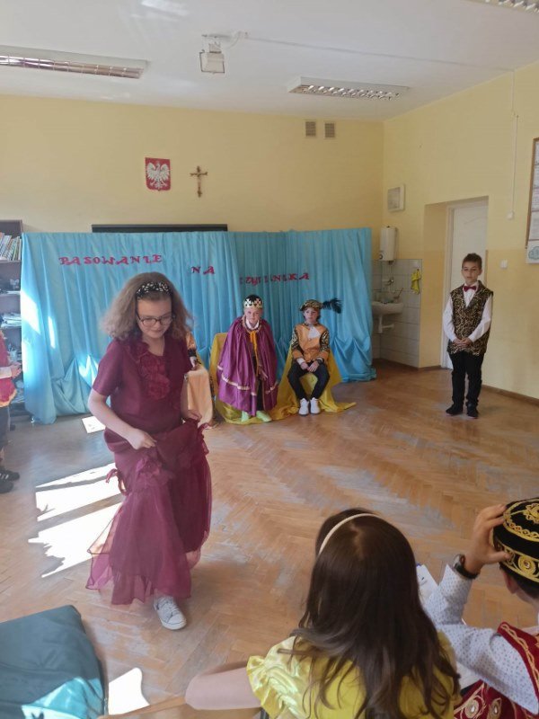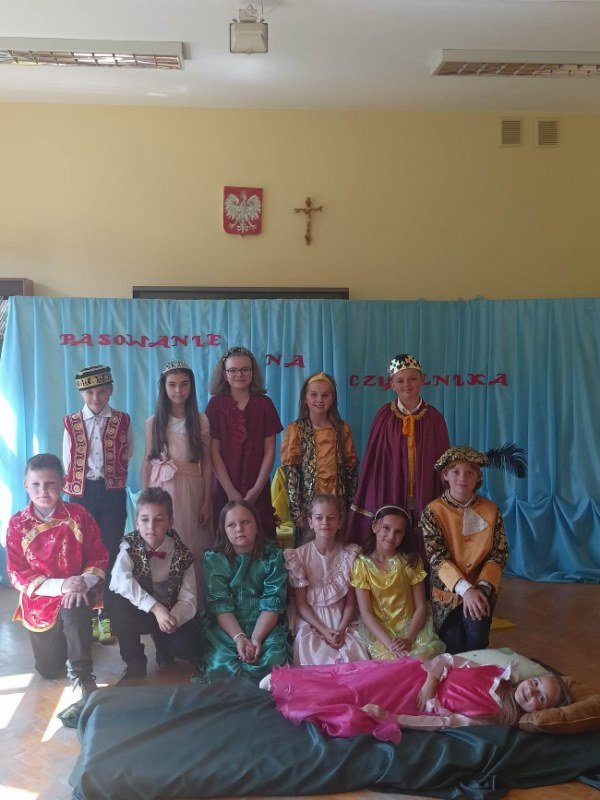 Pasowanie na czytelnika to oficjalne przyjęcie uczniów do grona czytelników biblioteki. Zanim jednak uczniowie złożyli przyrzeczenie, obejrzeli przedstawienie, przygotowane przez dzieci z klasy II oraz III przebranych za postacie z baśni pt. Księżniczka na ziarnku grochu. Występujący przybliżyli wszystkim zebranym świat bohaterów tejże bajki. Uczniowie również dowiedzieli się, jak należy dbać o książki. Po takim wprowadzeniu przyszli czytelnicy złożyli uroczyste przyrzeczenie, że zawsze będą kochać i szanować książki, a pani bibliotekarka wielką księgą uroczyście dokonała pasowania każdego z uczniów na czytelnika.