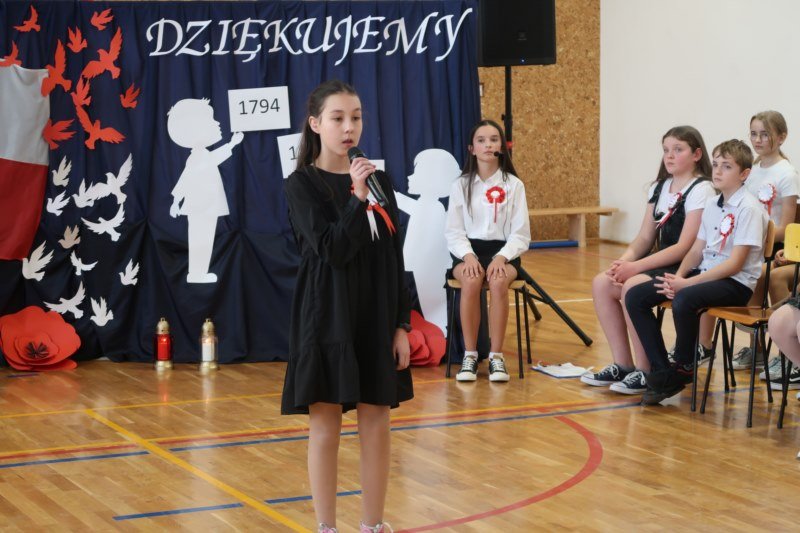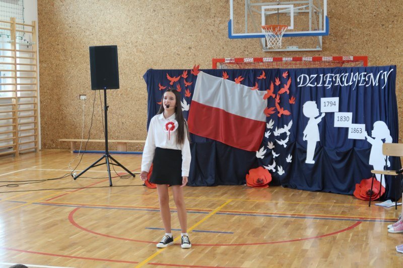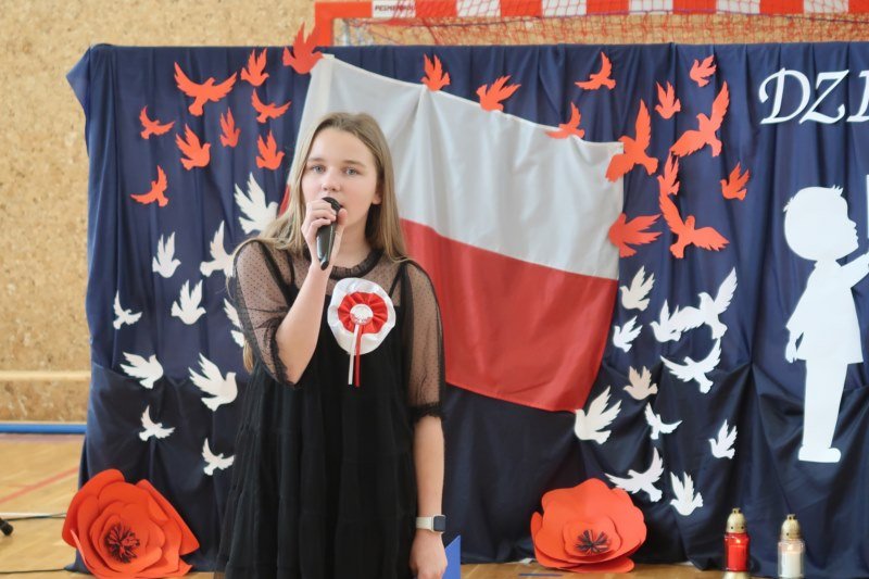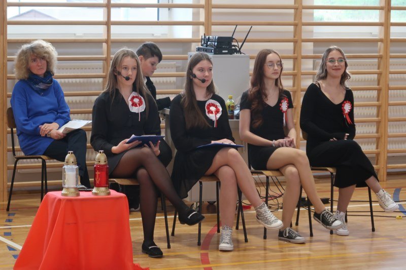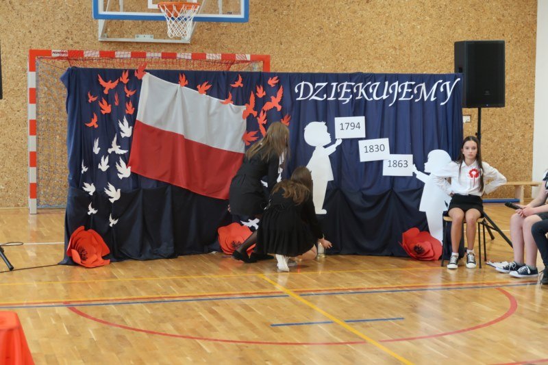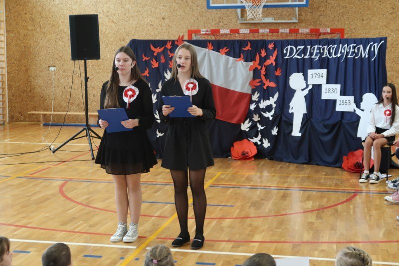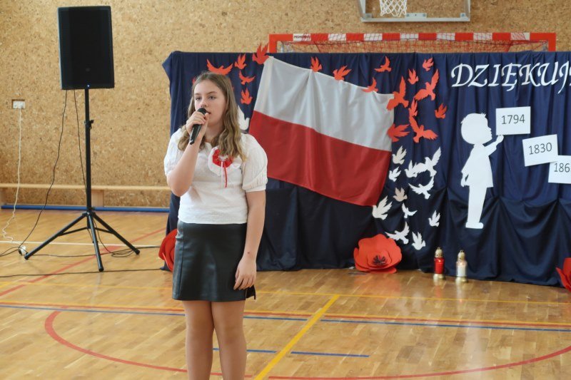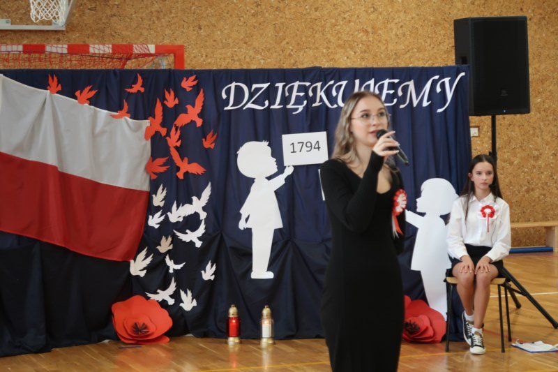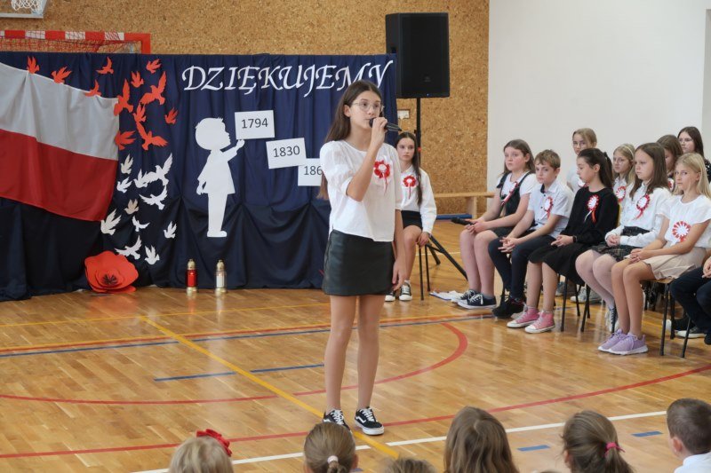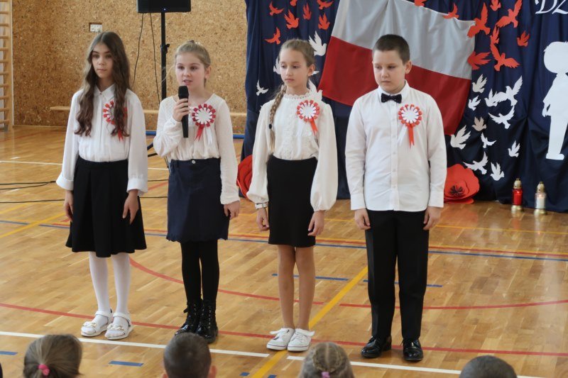 Nasi uczniowie pod kierunkiem p. Małgorzaty Wojtuń i p. Agnieszki Leń przygotowali bardzo piękną a zarazem wzruszającą akademię. Słowa pieśni i recytacje wspaniałych patriotycznych wierszy przybliżyły nam w sposób bardzo zrozumiały tragedię i ból Polaków po utracie wolnej Ojczyzny, który trwał aż 123 lata oraz radość i wzruszenie po odzyskaniu upragnionej niepodległości. Przedstawili postaci historyczne mające ogromne znaczenie w tych wydarzeniach. Symboliczne zapalenie zniczy przez narratorów, upamiętniło nam bohaterów, patriotów oraz lata, jakże odległe, a jak bardzo ważne dla dzisiejszych czasów.