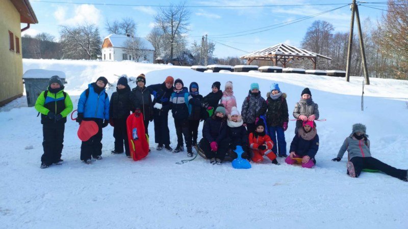 Był też czas na zabawy na śniegu. Największą frajdą było rzucanie śnieżkami, robienie aniołków i orłów oraz zjeżdżanie na sankach z pokaźnej górki.