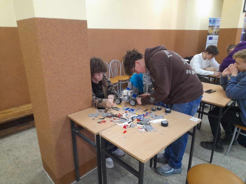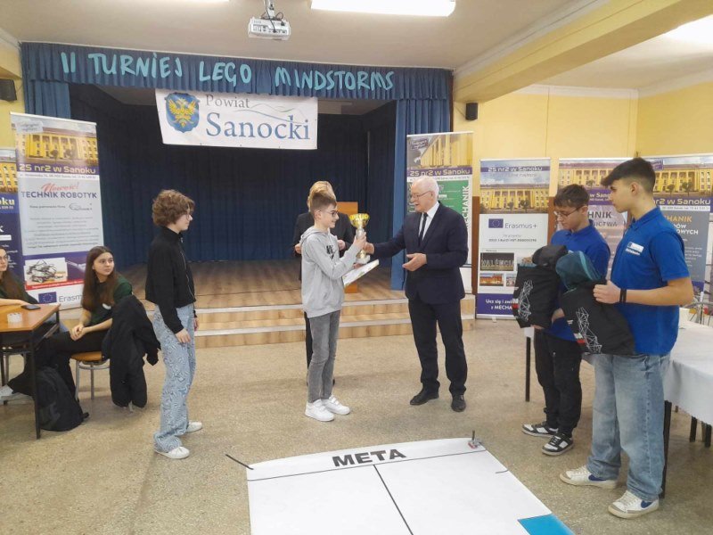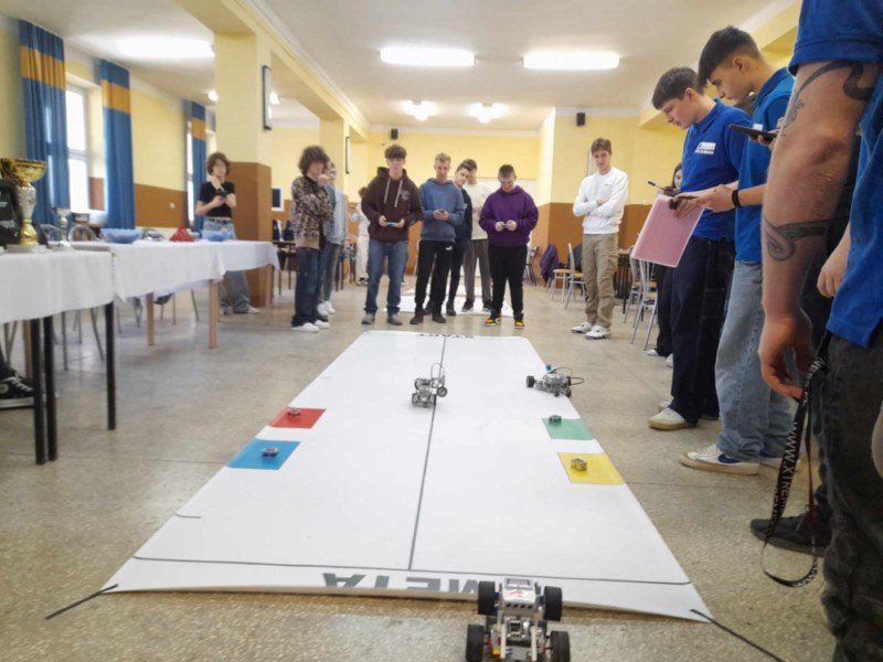 Wśród ośmiu podkarpackich drużyn znalazły się dwa zespoły z naszej szkoły (1. Natasza Kułak i Jakub Smoleń oraz 2. Filip Śmietana i Tymoteusz Rachwał.) Konkurs polegał na zbudowaniu robota, który w jak najszybszym czasie wykona pięć następujących zadań - wyścig robotów, przejazd po ósemce, przewiezienie klocków na oznaczone pole, przejazd po moście oraz sumo. Po zaciętej rywalizacji drużyna reprezentowana przez Nataszę i Jakuba zbudowała najlepszego robota, który wykonał najszybciej zadania i zapewnił naszym uczniom zwycięstwo.