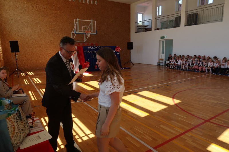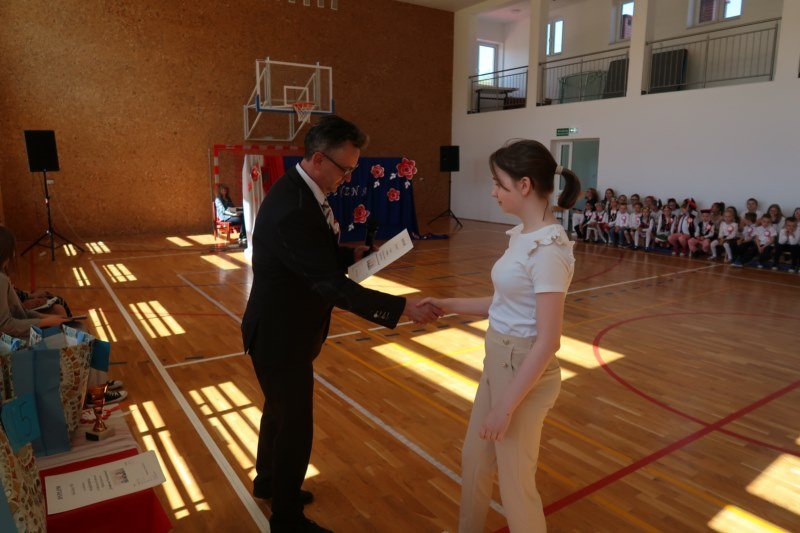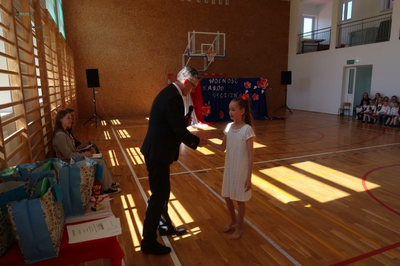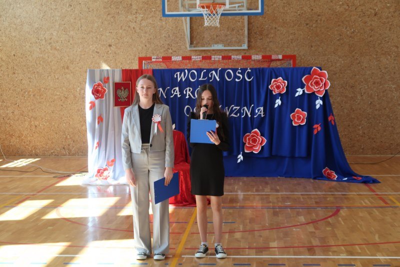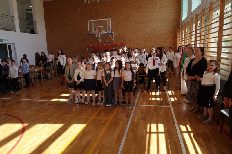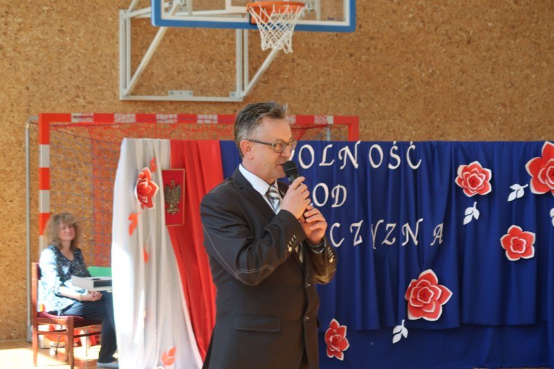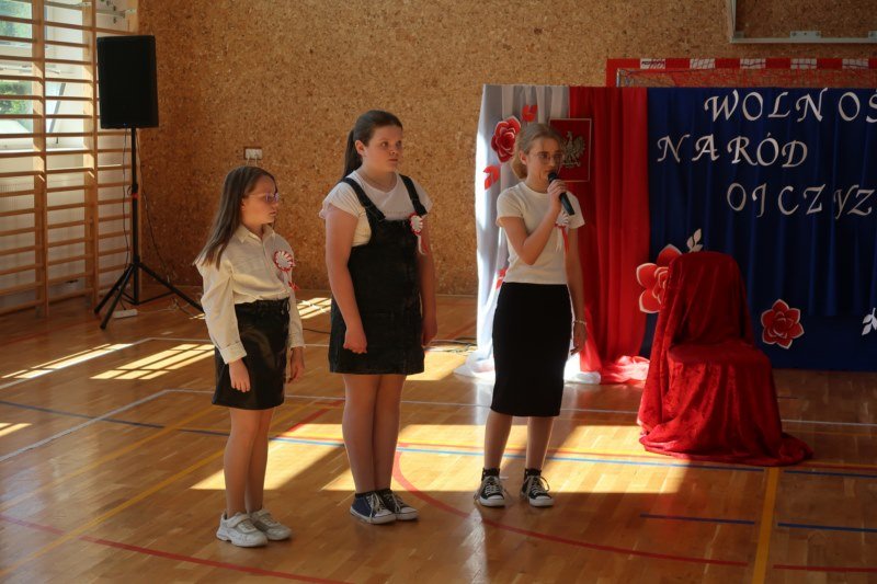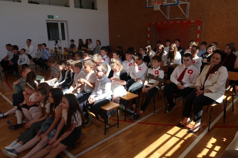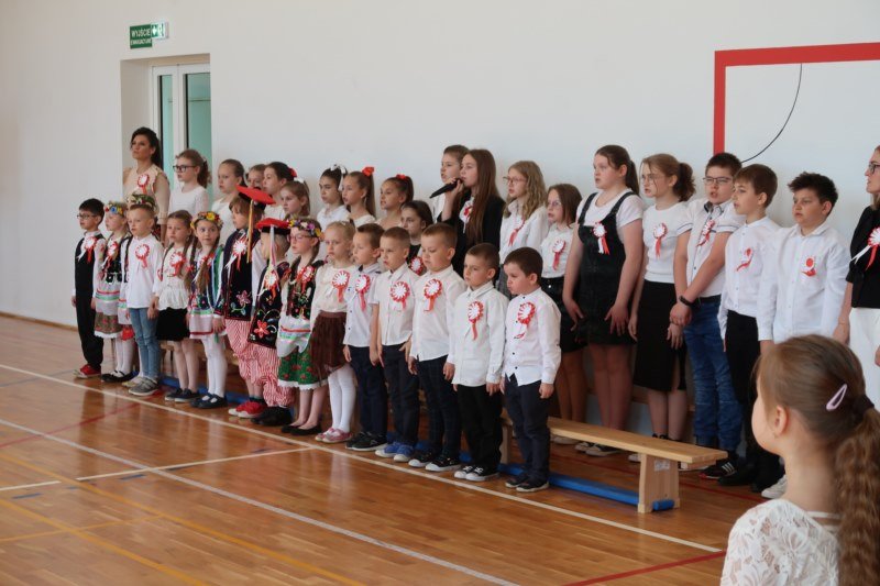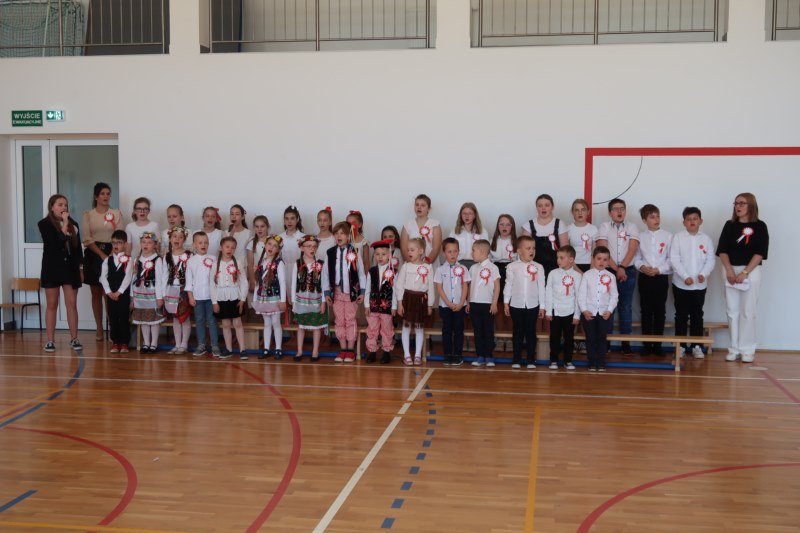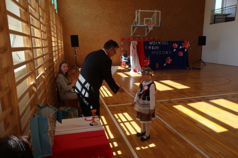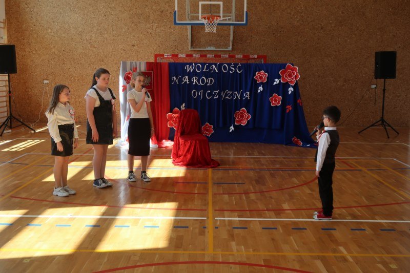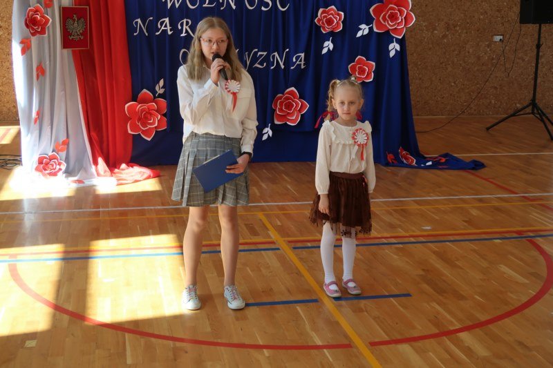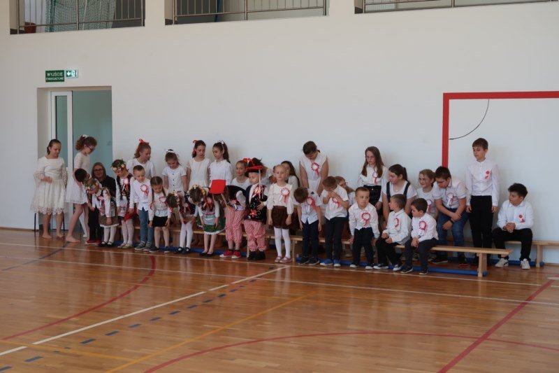Uczniowie naszej szkoły chętnie i z zaangażowaniem udowodnili, że może być inaczej. Przygotowali wraz z opiekunami program artystyczny, który w prostych słowach ukazał, iż naród który nie zna swojej przeszłości umiera i nie buduje przyszłości. Podjęto wspólnie próbę odpowiedzi na pytania czym dla nas jest Ojczyzna, Naród i Wolność.... Oprócz krótkiego rysu historycznego moglismy obejrzeć układ taneczny z elementami krakowiaka w wykonaniu dzieci z zerówki pod opieką p.Haliny Wojtowicz oraz widowisko muzyczne pt. "Flaga Polski" w wykonaniu uczennic z klasy IV pod opieką p.Edyty Szul. Dziękujemy także Paniom Renacie Drozdowskiej za oprawę muzyczną i Monice Rachwal, która wykononała dekoracje. Nad całością uroczystości czuwała p.Malgorzata Ścibor.
