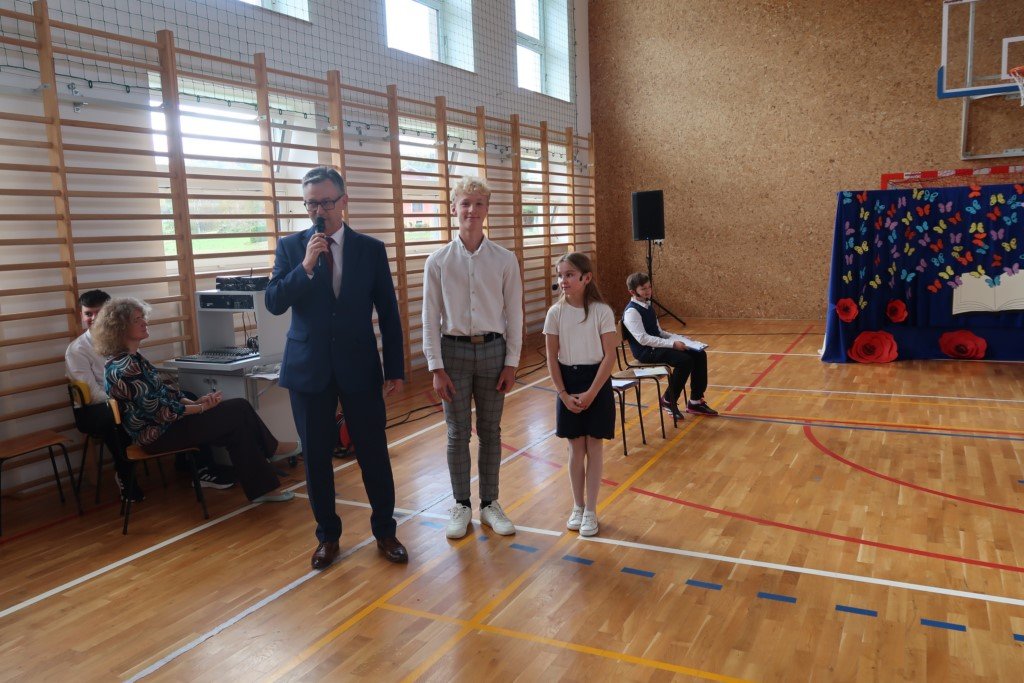 Po części artystycznej głos zabrał dyrektorJan Piotrowski, który życzył wszystkim zdrowia i wytrwałości w wykonywaniu swoich obowiązków. Nagrodził również nauczycieli i pracowników.