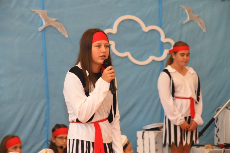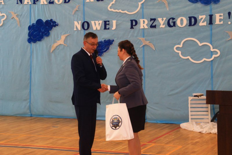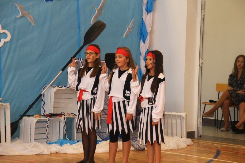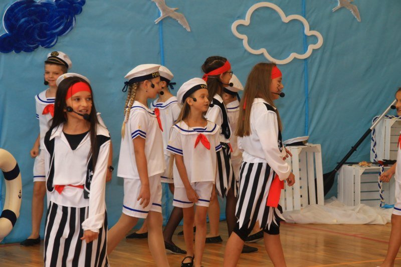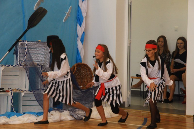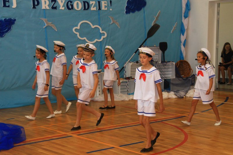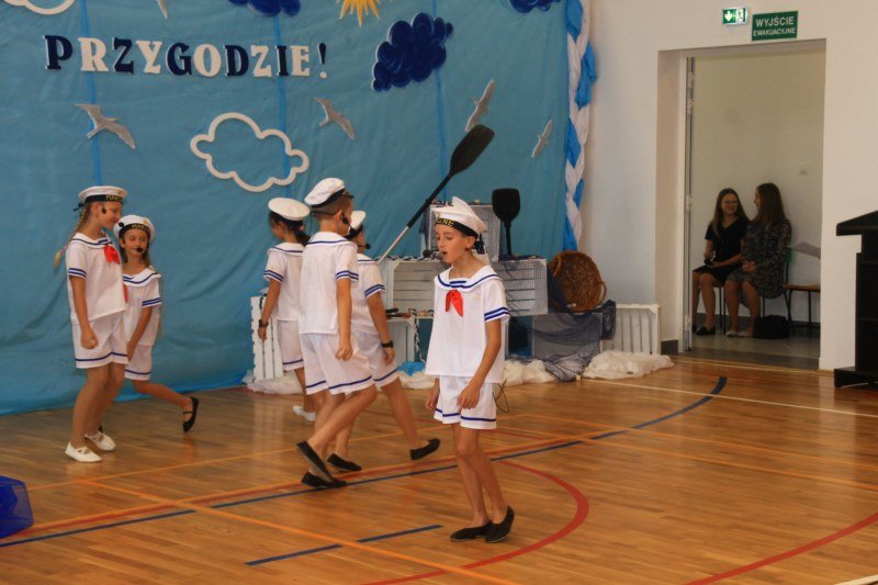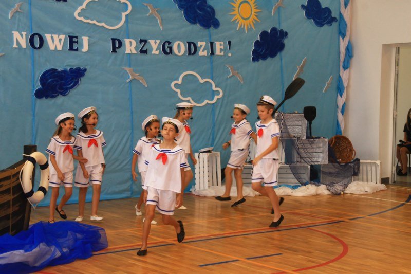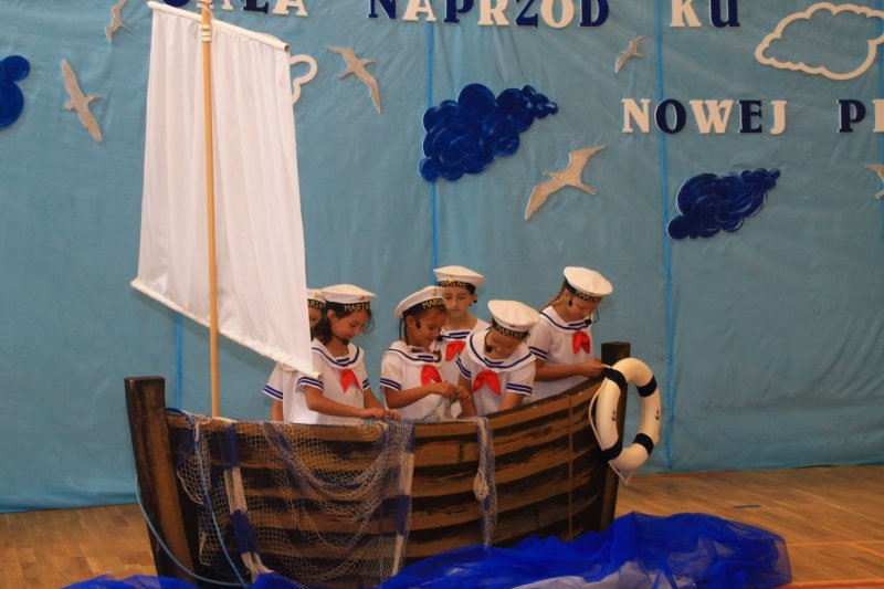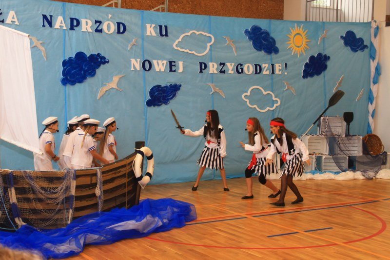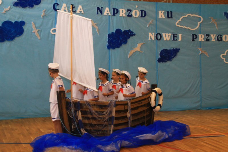 Po wystąpieniach oficjalnych dyrektor przekazał głos uczniom, którzy pod kierunkiem Bożeny Dziedzic, Małgorzaty Wojtuń i Renaty Drozdowskiej wystąpili w programie artystycznym pod hasłem „Cała naprzód ku nowej przygodzie”. Tłem występu była dekoracja przygotowana przez Monikę Rachwał i Katarzynę Teresińską, zaś nad oprawą dźwiękową czuwał Gabriel Konieczny.