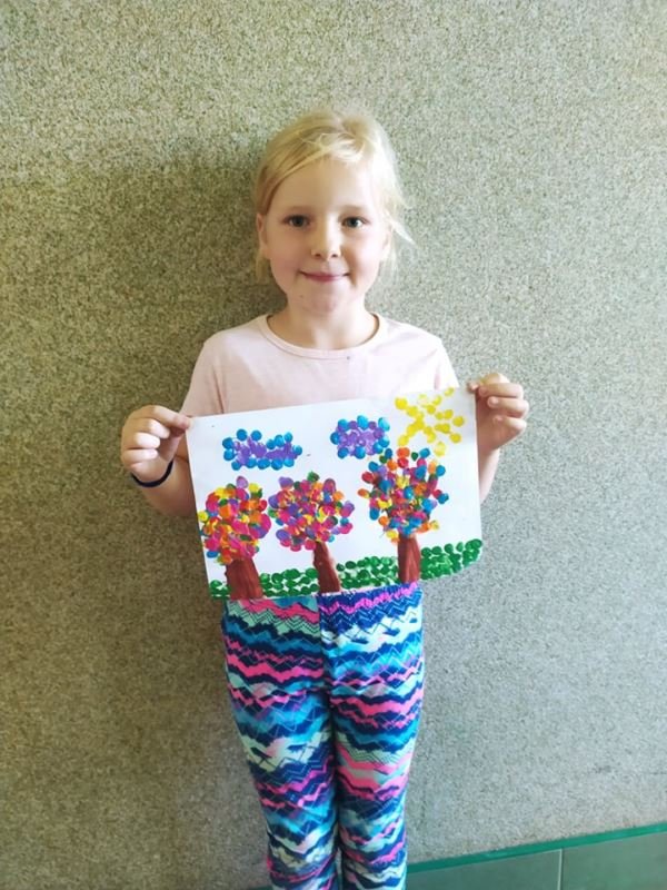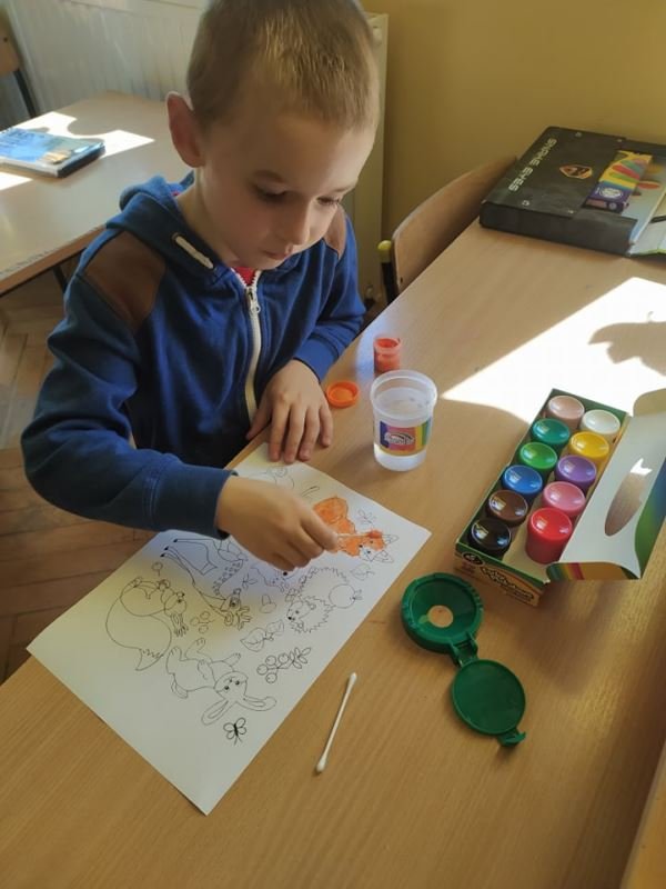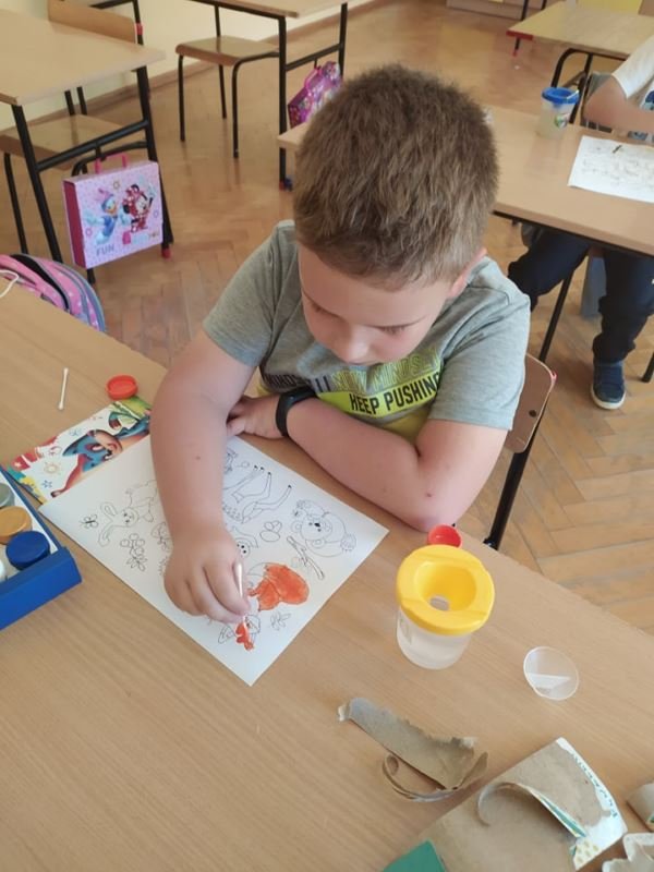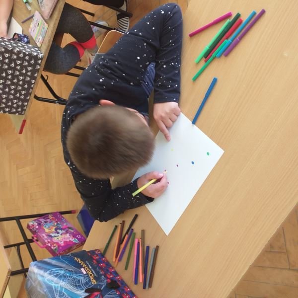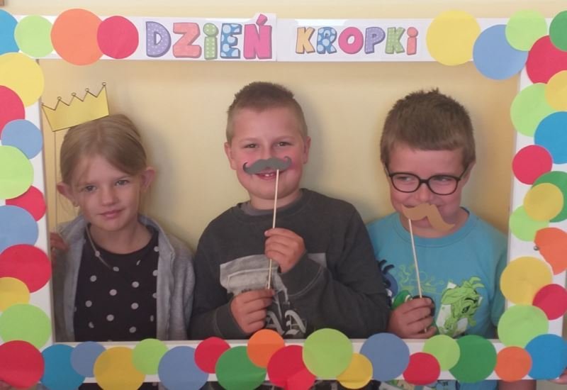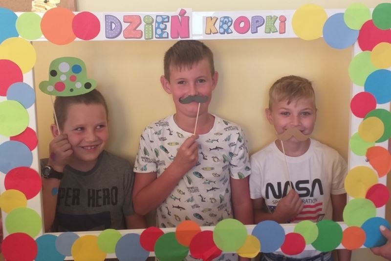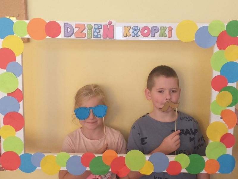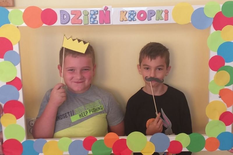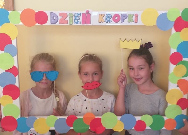 Uczniowie zainspirowani obejrzaną historią chętnie rozmawiali o swoich talentach, każdy również mógł wykazać się umiejętnościami plastycznymi. Powstawały różnorodne prace, na których nie zabrakło kropek. Nie obyło się także bez zabaw ruchowych na sali gimnastycznej. W rytm muzyki uczniowie poruszali się zgodnie z poleceniami prowadzącego. Dzieci miały również możliwość wykonania pamiątkowych zdjęć w ramce wykonanej specjalnie na tę okazję. Był to dzień pełen atrakcji i niespodzianek.