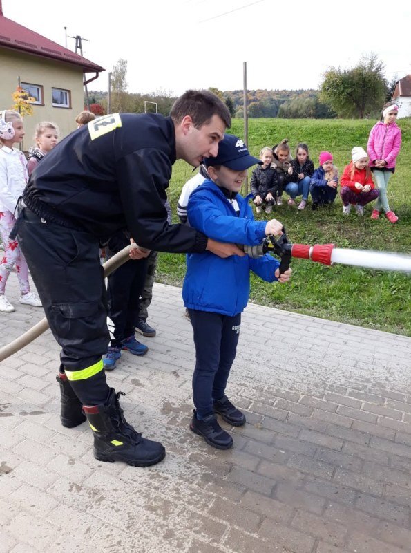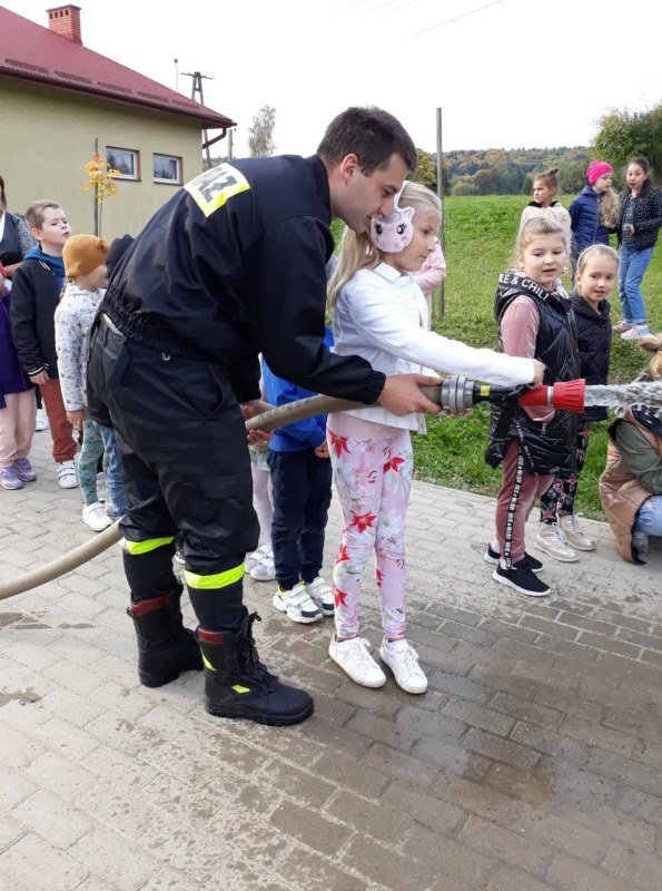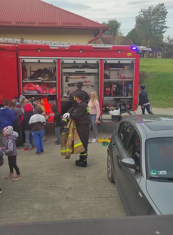 6 października 2021r. nasza szkoła gościła Panów Strażaków z Ochotniczej Straży Pożarnej w Zmiennicy oraz przedstawiciela KP PSP w Brzozowie druha Dawida Nowaka. W trakcie spotkania strażacy przybliżyli dzieciom, na czym polega praca strażaka i przekazali cenne wskazówki, jak bezpiecznie zachować się w czasie wypadku, czy pożaru. Dzieci utrwaliły numery alarmowe 998 i 112 i dowiedziały się, w jakich okolicznościach należy wezwać straż pożarną.